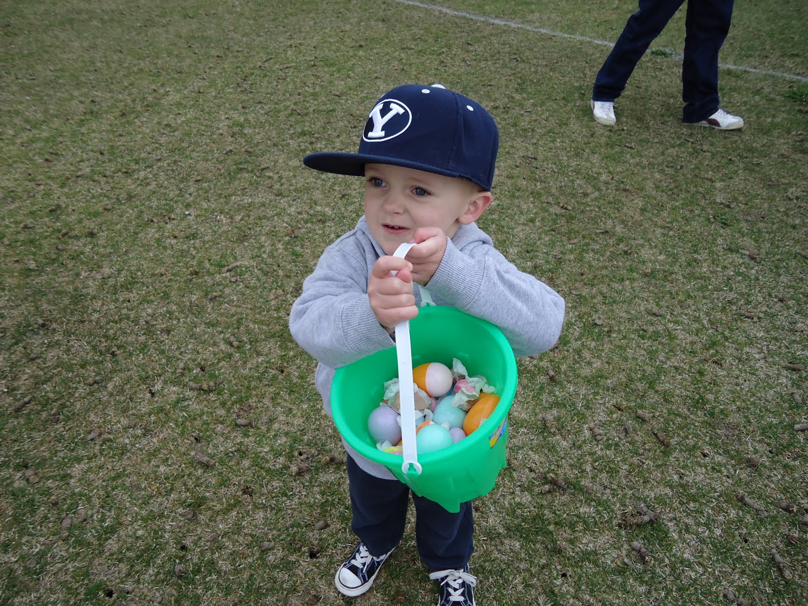 So Easter was way fun for all of us. We went to 3 outside of the house Easter egg hunts and Kael always came home with tons of candy. I'm not going to lie it was because of me. I really help kael and get into the hunts with him and try to grab a lot for him so his not sad. There was a Easter egg hunt we went to that was in draper and they had tickets in eggs for prizes and kael did actually get one and got a huge stuffed animal that was an Easter bunny. He was pretty excited about it. I know I have more pictures from that day but who knows where they are. lol. Easter was so much fun this year because kaels older and knew more what was going on. The Easter bunny did come to our house and kael got lots of goodies with a 3 wheeler bike.